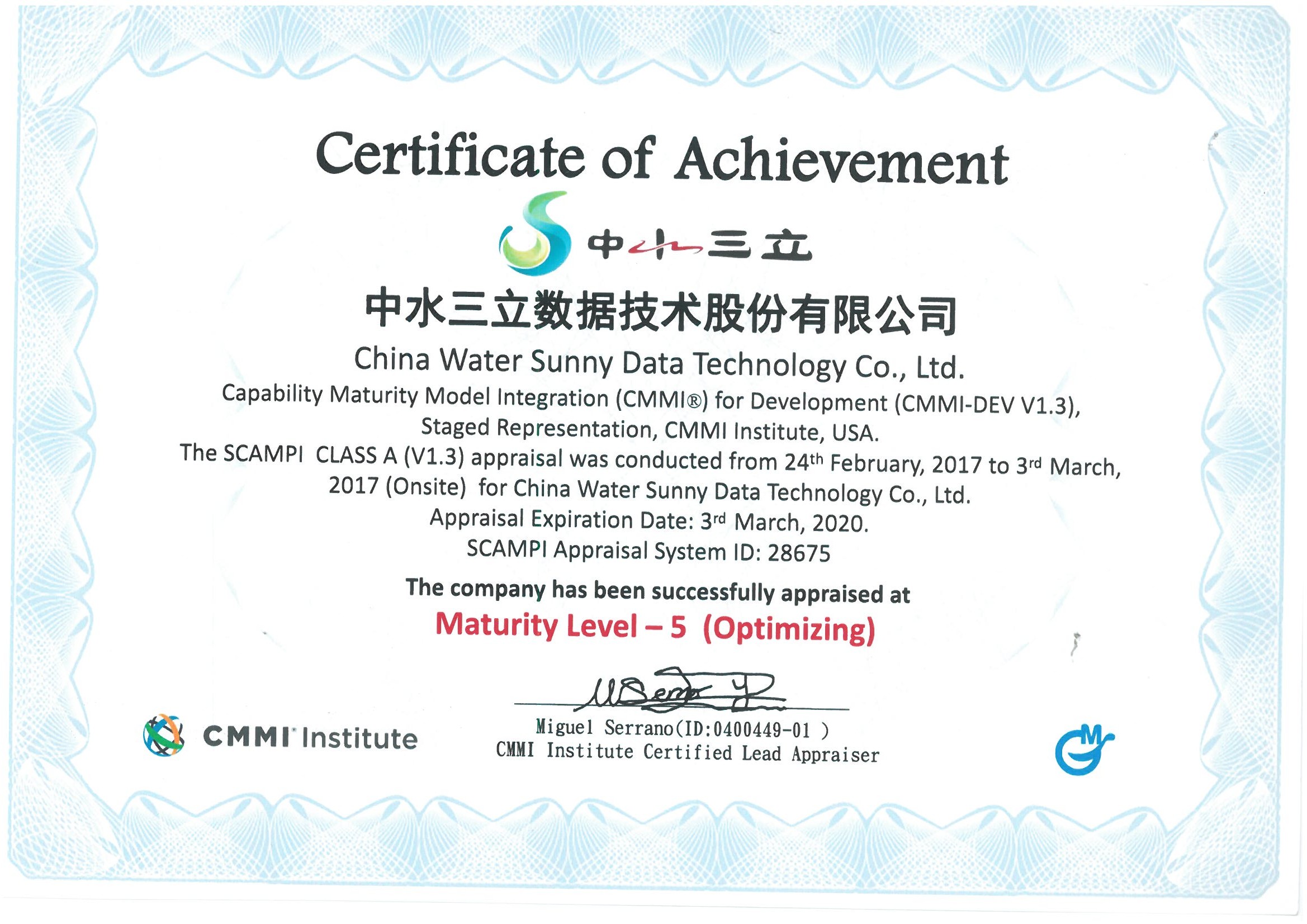 近日,我公司順利通過CMMI5級成熟度評估。
