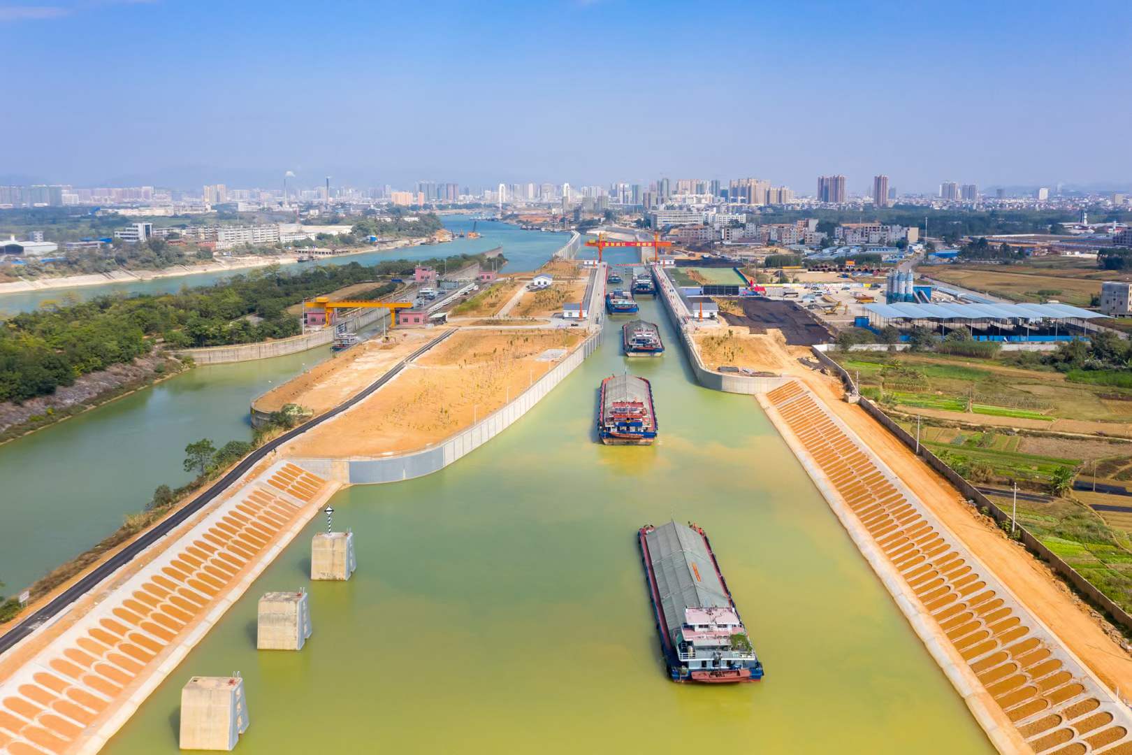 2020年12月1日,廣西貴港航運樞紐二線船閘工程建成通航。