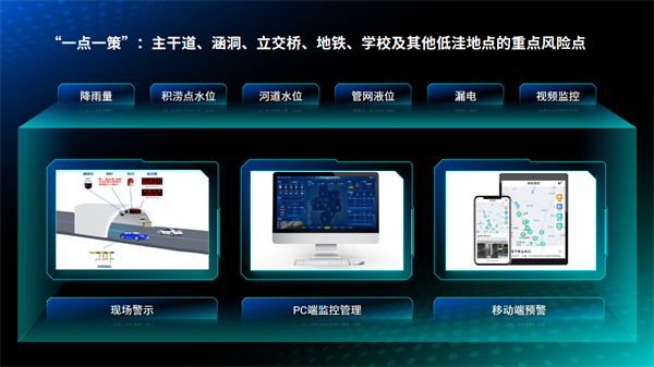 現(xiàn)場警示采用LED顯示屏+語音喊話的方式,易澇點設有顯示屏可播放警戒文字,并可通過視頻實時監(jiān)控在線語音喊話,及時疏散現(xiàn)場群眾,避免不必要的人員傷亡和財產(chǎn)損失。