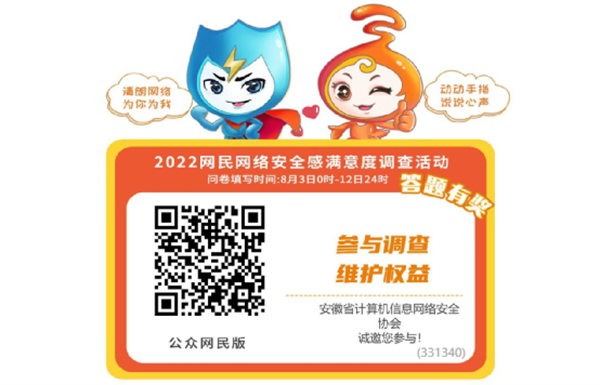 安徽2022網(wǎng)民網(wǎng)絡(luò)安全感滿意度調(diào)查問卷今日正式上線(答題有獎!)