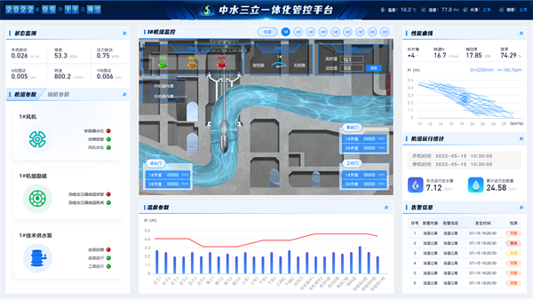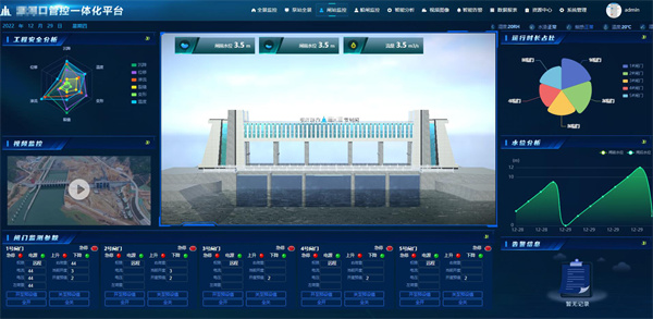 展示閘站的運行和控制信息,涵蓋閘門運行狀態(tài)的監(jiān)測、工程安全監(jiān)測、視頻監(jiān)控、閘門監(jiān)測參數(shù)、運行時長占比、水位分析、告警信息、閘前水位、閘后水位、流量等統(tǒng)計信息。