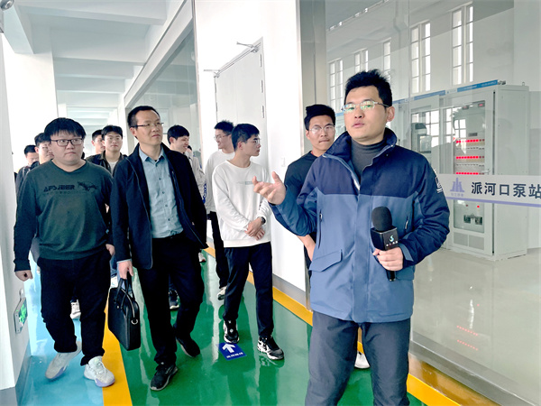 隨后介紹了引江濟淮肥西建管處的工程概況,以及泵站設備運行的原理及機制,使大家更直觀了解并學習泵站運行的相關知識。學生們紛紛表示,此次實地參觀項目現(xiàn)場,切身領略綠水青山中的信息化建設,收獲頗豐。