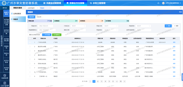 對市區(qū)兩級應(yīng)急綜合預(yù)案、域內(nèi)所有水庫、水閘、泵站、堤防等水利設(shè)施預(yù)案,以及城市所有排澇片、積水風(fēng)險點(diǎn)、山洪災(zāi)害危險區(qū)等片(點(diǎn))預(yù)案,實(shí)現(xiàn)全覆蓋更新管理。2023年,支撐市、區(qū)兩級水旱災(zāi)害防御部門更新720條預(yù)案信息。