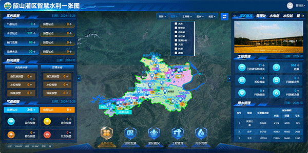 門戶頁面將整合韶山灌區(qū)現(xiàn)有的OA、官網(wǎng)等系統(tǒng),并計劃接入氣象、量測水、閘門控制及視頻監(jiān)控等多源信息。同時,平臺還將建設(shè)防汛抗旱、檔案管理、效益分析、工程運維、配水調(diào)度和水費計收等業(yè)務(wù)系統(tǒng),以全面提升灌區(qū)的信息化管理水平。通過一張圖不僅展示了灌區(qū)的水文化信息和宣傳視頻,還直觀反映了水資源利用情況、用水統(tǒng)計、配水面積以及效益信息等關(guān)鍵數(shù)據(jù)。