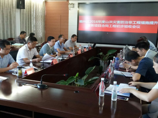 近期,由黃山市水利局主持,安徽省防辦、黃山市防辦、黃山水文水資源局、徽州財政局、徽州水利局、徽州區(qū)防辦、青海省水利水電勘測設(shè)計研究院、北京中聯(lián)環(huán)建設(shè)工程管理有限公司、中水三立數(shù)據(jù)技術(shù)股份有限公司參加的《黃山市徽州區(qū)2016年度山洪災(zāi)害防治非工程措施提升及技術(shù)服務(wù)》項目驗收會議在黃山市徽州區(qū)召開,會議成立了驗收工作組。