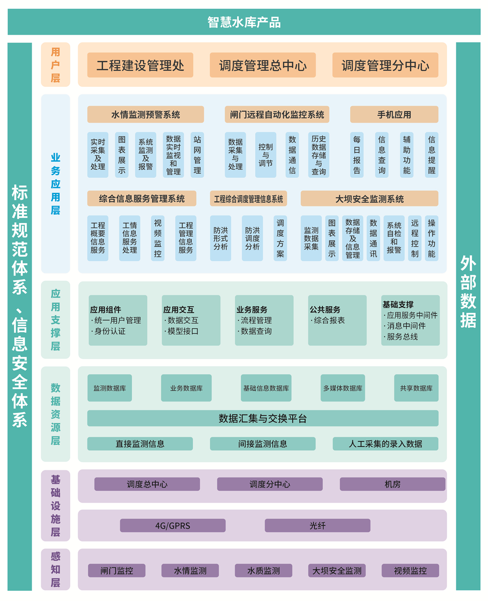產(chǎn)品覆蓋水庫水雨情監(jiān)測、大壩安全監(jiān)測、自動化控制、視頻圖像監(jiān)控、設備工程運維、水庫防洪調(diào)度、日常業(yè)務管理等,旨在為水庫的安全管理和科學調(diào)度提供有效的非工程措施,解決水庫日常運維管理和汛期應急調(diào)度等問題,實現(xiàn)水庫精細化管理,由傳統(tǒng)人工管理向智慧水利現(xiàn)代化管理進行轉(zhuǎn)變。