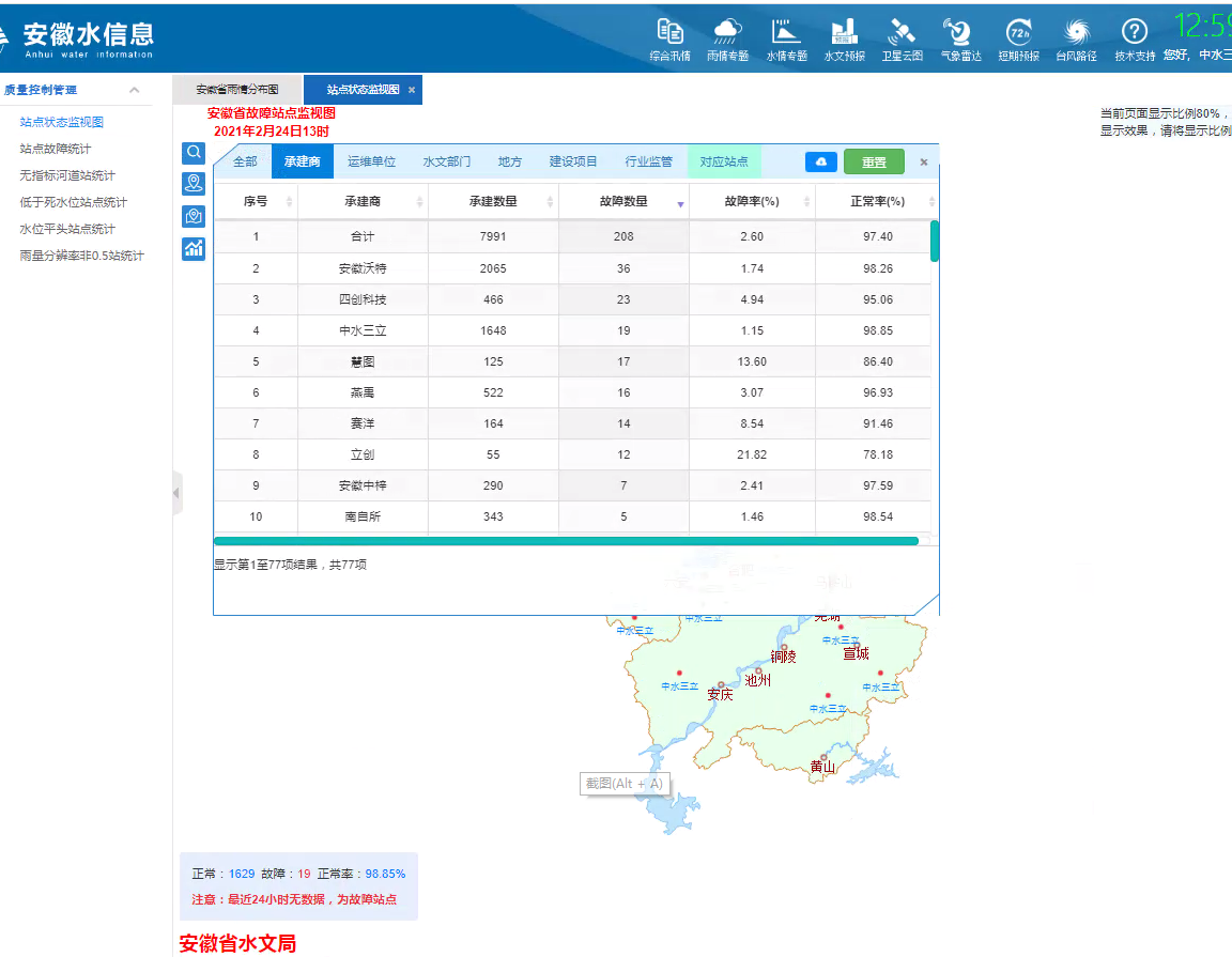 同時(shí)安排專人每日登陸安徽水信息網(wǎng)核查,超壩頂,超設(shè)計(jì),低于死水位和未上線站點(diǎn)數(shù)據(jù),一經(jīng)發(fā)現(xiàn)問題站點(diǎn)立刻聯(lián)系項(xiàng)目負(fù)責(zé)人進(jìn)行整改,保障上線后上線率長期保證在98%以上,同步我們公司整體運(yùn)維項(xiàng)目的站點(diǎn)上報(bào)率為98%以上,均高于全省平均水平。