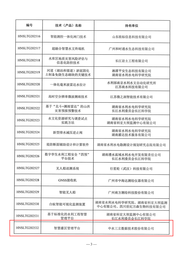 本次推介會(huì)同步發(fā)布了《湖南省2025年度水利先進(jìn)實(shí)用技術(shù)(產(chǎn)品)推廣名錄》,經(jīng)嚴(yán)格篩選與評(píng)審,中水三立自主研發(fā)的智慧灌區(qū)管理平臺(tái),憑借先進(jìn)性、實(shí)用性和推廣價(jià)值成功上榜,獲得省級(jí)水利主管部門(mén)及行業(yè)專(zhuān)家的權(quán)威認(rèn)可。